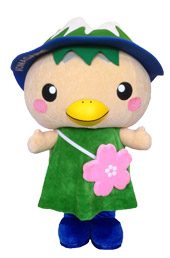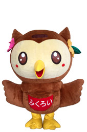 袋井市キャラクター「フッピー」は、市の鳥「フクロウ」をモチーフに、市の木「キンモクセイ」と市の花「コスモス」の髪飾りがチャームポイント。翼を広げ元気にジャンプし、飛躍する市の姿がイメージされています。