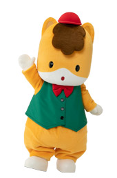 キツネと豊川いなり寿司を合体させたキャラクターのいなりんは、背中からとび出したお米がトレードマーク。